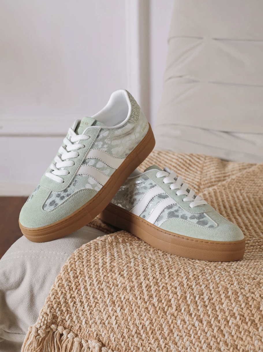 Baskets à reflet léopard - Vert d'eau